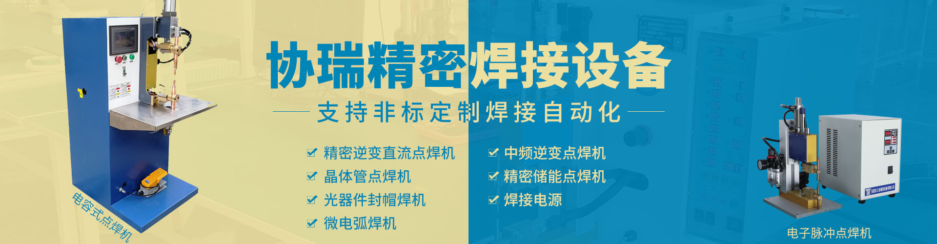 東莞市協瑞精密焊接設備有限公司始于2009年,引進日本電子技術和留學人才,致力于國內高端精密焊接裝備的研發、制造,不間斷地開發各種適合于用戶需求的新產品,成立10多年來公司竭誠為廣大用戶提供更多優質產品服務。 旗下產品: 精密逆變直流點焊機、晶體管式點焊機、光器件封帽焊機、微電弧焊機、中頻逆變點焊機、精密儲能點焊機以及高品質焊接電源,定制各式專業焊接設備。